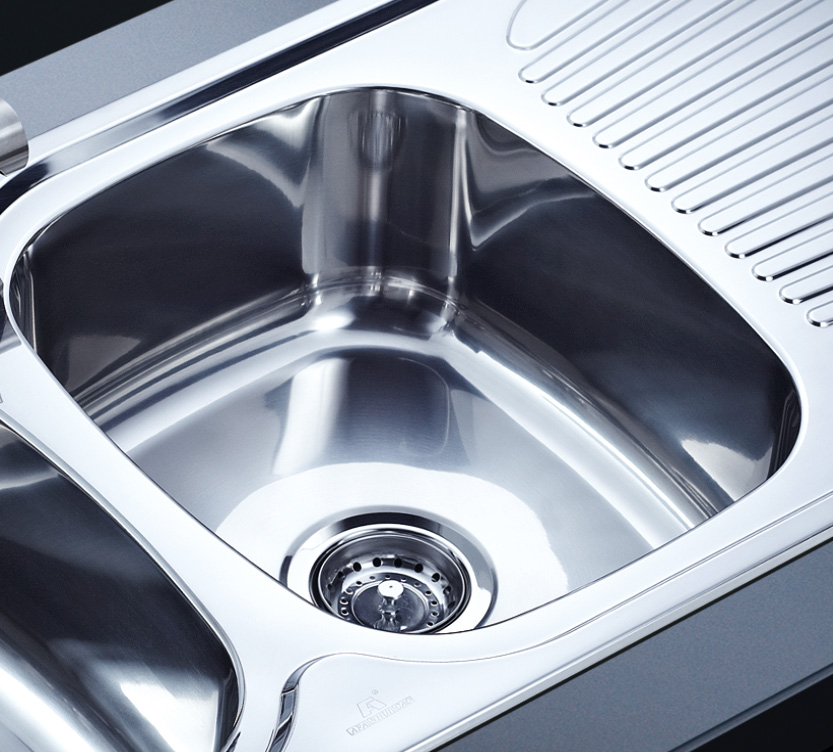 阿發水槽立邊采用國際先進的10-25°小R角一次成型拉伸技術,更具立體感與時尚潮流,亦能充分擴展水槽利用空間;一次成型拉伸技術,杜絕了焊接工藝易產生的水槽生銹,脫焊事故,充分保障水槽50年以上的使用壽命