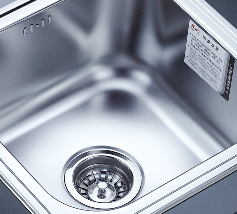 阿發水槽整體經拉絲處理,質地更加光滑,視覺更加柔和。能有效抵擋異物撞擊,刮傷及磨損,防止油污沾染,常用常新;柔和的光澤令水槽平添高雅氣質,更能避免鏡面材質反射的光污染