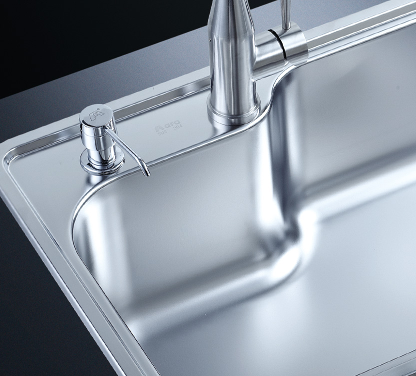 阿發(fā)水槽立邊采用國(guó)際先進(jìn)的10-25°小R角一次成型拉伸技術(shù),更具立體感與時(shí)尚潮流,亦能充分?jǐn)U展水槽利用空間;一次成型拉伸技術(shù),杜絕了焊接工藝易產(chǎn)生的水槽生銹,脫焊事故,充分保障水槽50年以上的使用壽命