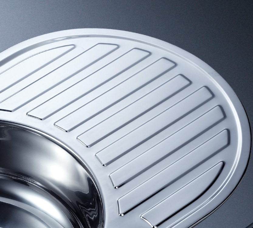 槽底采用斜面壓痕,四輻導流槽設計,與平面壓痕和無痕水槽相比,導水更為流暢,下水更迅速,能有效防止積水,消除沉淀物