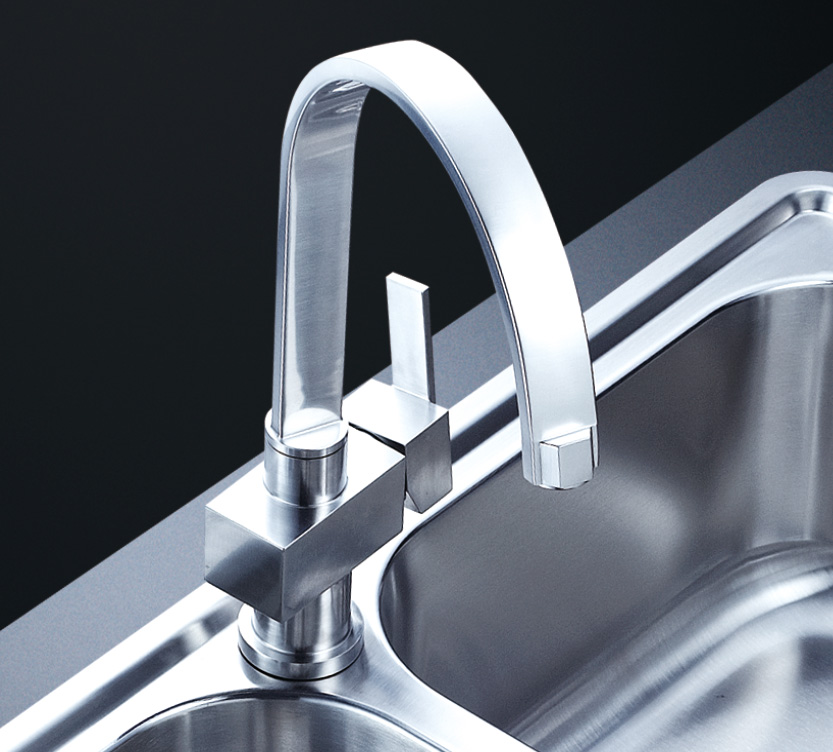 阿發水槽整體經拉絲處理,質地更加光滑,視覺更加柔和。能有效抵擋異物撞擊,刮傷及磨損,防止油污沾染,常用常新;柔和的光澤令水槽平添高雅氣質,更能避免鏡面材質反射的光污染