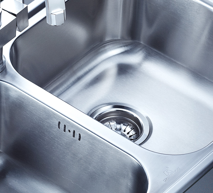 阿發水槽立邊采用國際先進的10-25°小R角一次成型拉伸技術,更具立體感與時尚潮流,亦能充分擴展水槽利用空間;一次成型拉伸技術,杜絕了焊接工藝易產生的水槽生銹,脫焊事故,充分保障水槽50年以上的使用壽命
