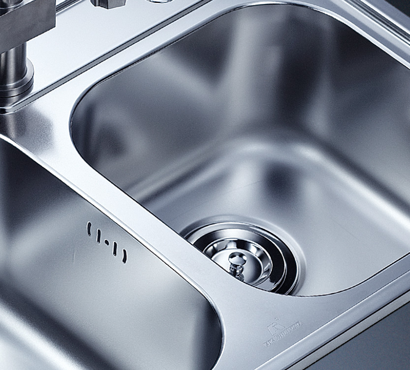 阿發水槽立邊采用國際先進的10-25°小R角一次成型拉伸技術,更具立體感與時尚潮流,亦能充分擴展水槽利用空間;一次成型拉伸技術,杜絕了焊接工藝易產生的水槽生銹,脫焊事故,充分保障水槽50年以上的使用壽命