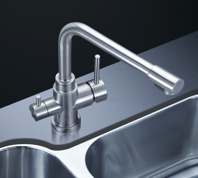 阿發水槽立邊采用國際先進的10-25°小R角一次成型拉伸技術,更具立體感與時尚潮流,亦能充分擴展水槽利用空間;一次成型拉伸技術,杜絕了焊接工藝易產生的水槽生銹,脫焊事故,充分保障水槽50年以上的使用壽命