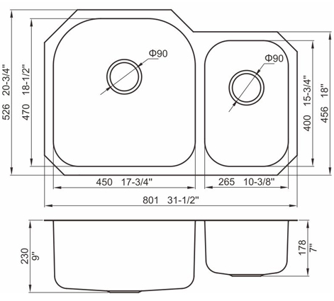 槽底采用斜面壓痕,四輻導流槽設計,與平面壓痕和無痕水槽相比,導水更為流暢,下水更迅速,能有效防止積水,消除沉淀物