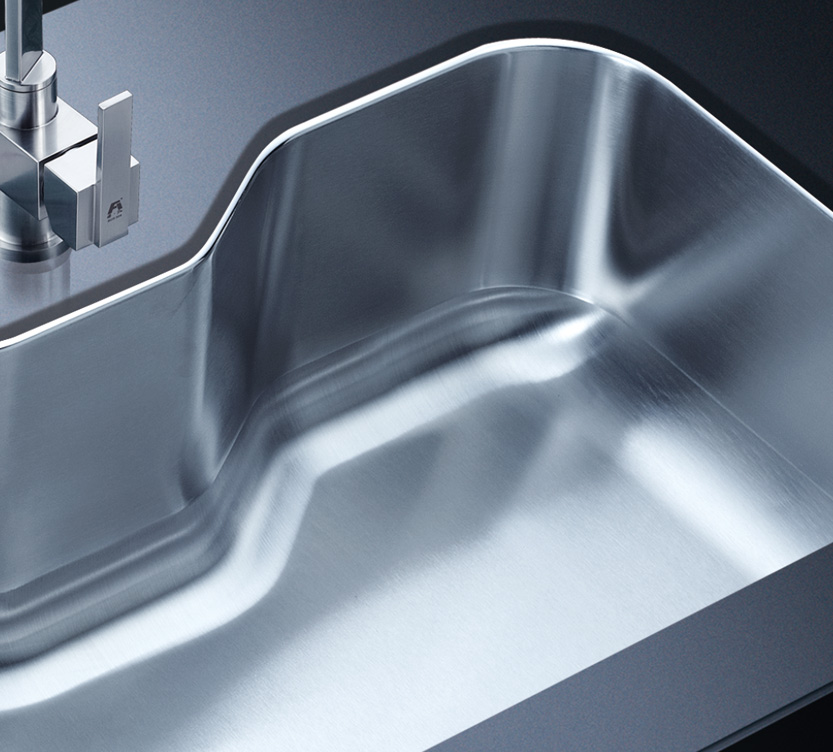 阿發水槽立邊采用國際先進的10-25°小R角一次成型拉伸技術,更具立體感與時尚潮流,亦能充分擴展水槽利用空間;一次成型拉伸技術,杜絕了焊接工藝易產生的水槽生銹,脫焊事故,充分保障水槽50年以上的使用壽命