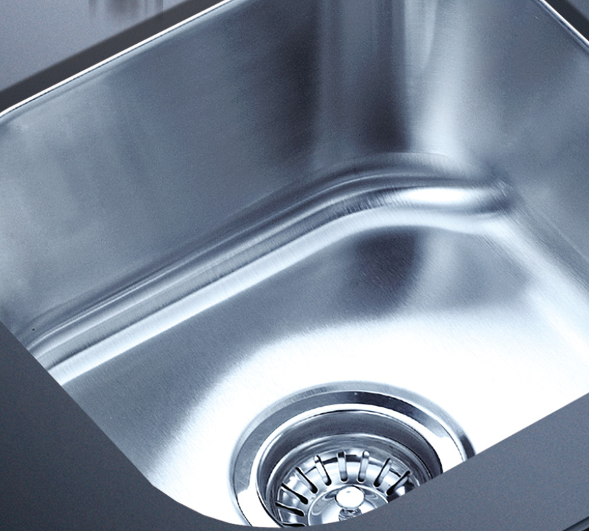 阿發(fā)水槽整體經(jīng)拉絲處理,質(zhì)地更加光滑,視覺更加柔和。能有效抵擋異物撞擊,刮傷及磨損,防止油污沾染,常用常新;柔和的光澤令水槽平添高雅氣質(zhì),更能避免鏡面材質(zhì)反射的光污染
