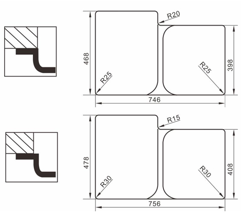 水槽四邊條采用一次成型的折彎加強筋工藝,雙倍堅固,承重力更強,解決了普通焊接工藝容易出現的凹點、脫焊、易割手等問題。專業配置的密封條和固定夾,安裝平整度高,不滲水,不松動