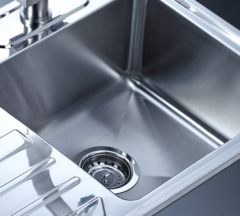 阿發水槽立邊采用國際先進的10-25°小R角一次成型拉伸技術,更具立體感與時尚潮流,亦能充分擴展水槽利用空間;一次成型拉伸技術,杜絕了焊接工藝易產生的水槽生銹,脫焊事故,充分保障水槽50年以上的使用壽命
