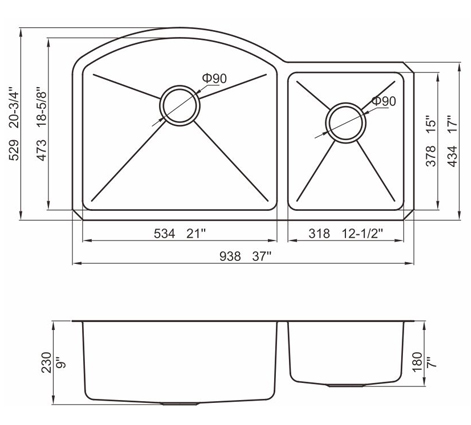 槽底采用斜面壓痕,四輻導(dǎo)流槽設(shè)計(jì),與平面壓痕和無痕水槽相比,導(dǎo)水更為流暢,下水更迅速,能有效防止積水,消除沉淀物