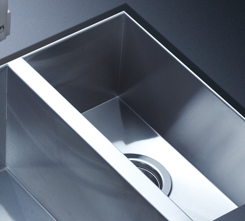 阿發水槽立邊采用國際先進的10-25°小R角一次成型拉伸技術,更具立體感與時尚潮流,亦能充分擴展水槽利用空間;一次成型拉伸技術,杜絕了焊接工藝易產生的水槽生銹,脫焊事故,充分保障水槽50年以上的使用壽命