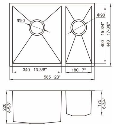 槽底采用斜面壓痕,四輻導流槽設計,與平面壓痕和無痕水槽相比,導水更為流暢,下水更迅速,能有效防止積水,消除沉淀物
