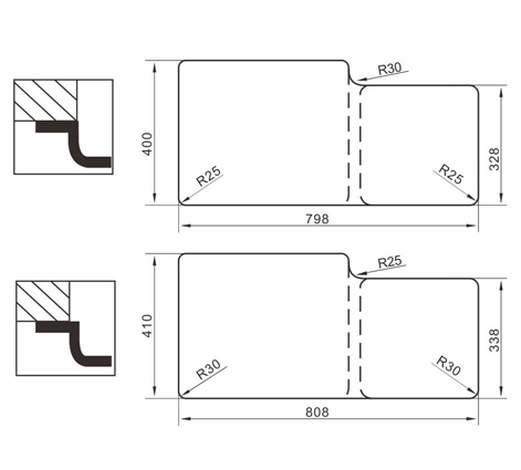水槽四邊條采用一次成型的折彎加強(qiáng)筋工藝,雙倍堅(jiān)固,承重力更強(qiáng),解決了普通焊接工藝容易出現(xiàn)的凹點(diǎn)、脫焊、易割手等問題。專業(yè)配置的密封條和固定夾,安裝平整度高,不滲水,不松動