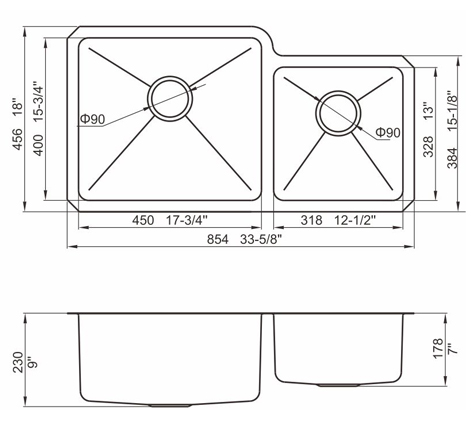 槽底采用斜面壓痕,四輻導(dǎo)流槽設(shè)計(jì),與平面壓痕和無痕水槽相比,導(dǎo)水更為流暢,下水更迅速,能有效防止積水,消除沉淀物