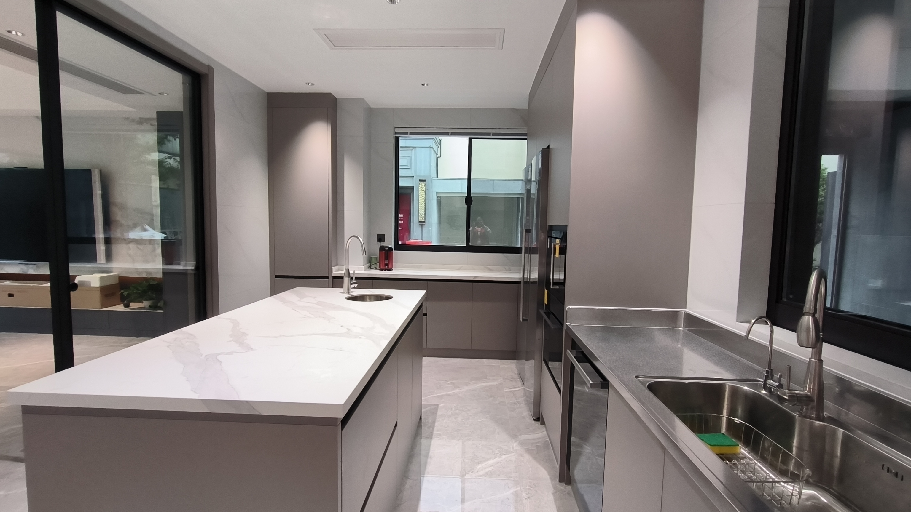 ? ? ? ? 洗滌區作為廚房的黃金C位,我們為業主打造了一體無縫不銹鋼水槽臺面,不打膠不開裂,完全避免漏水打濕下柜的問題,還不用擔心水槽的邊角堆積廚余污垢。